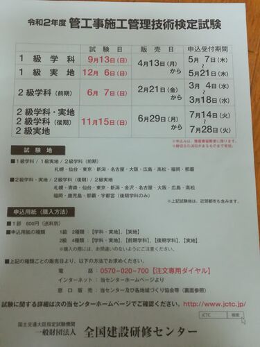 令和2年度の2級管工事施工管理技士 学科試験(前期)の申込用紙が2020年2月21日より販売開始されました! 受検を考えておられる方は、期間内に申込用紙の購入を忘れないように気を付けてください。 申込用紙の値段は、一部600円となっています。 販売期間は令…